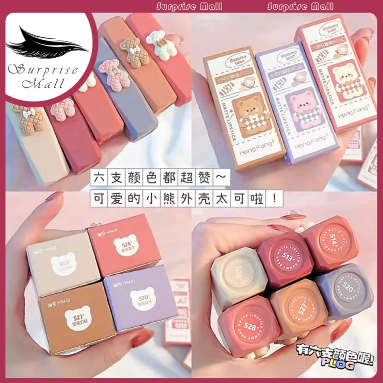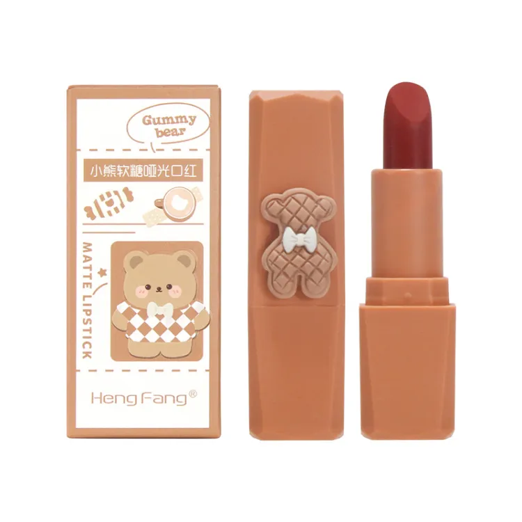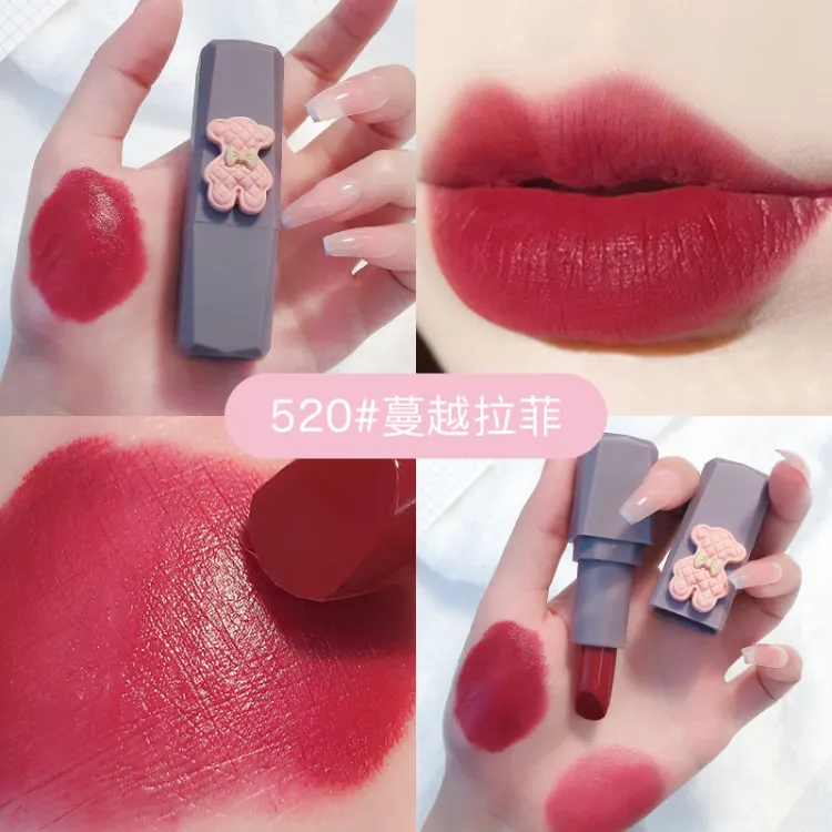Descriptions of KH One-piece Bear Fudge Matte Lipstick Silky Color Cream Velvet Soft Mist Not Easy To Sink Cup White Lipstick Student